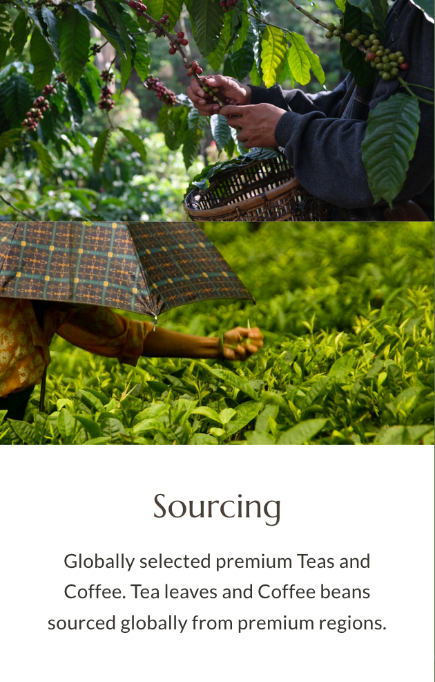 Globally selected premium Teas and Coffee. Tea leaves and Coffee beans sourced globally from premium regions.