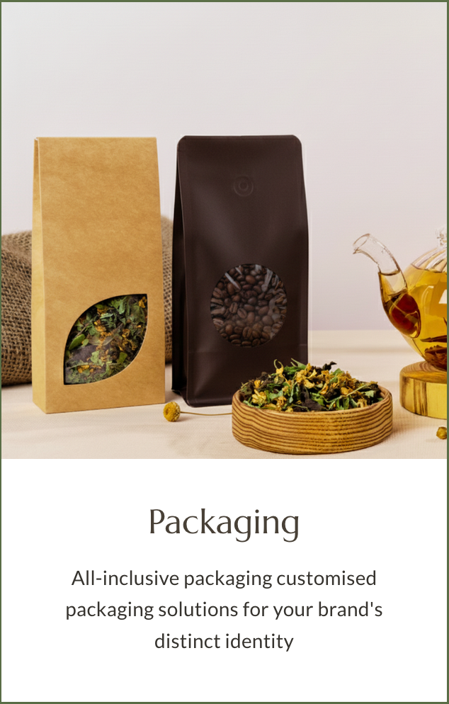 As private label packers, we are dedicated to top-tier quality, customisation, sustainability, and customer satisfaction. As global traders, we responsibly source ingredients from diverse origins, ensuring traceability and ethical practices that extend our commitment well beyond the cup. As traders of raw materials, we strive to provide seamless service worldwide contributing to the vibrant global community built around tea, coffee, and herbal infusions.